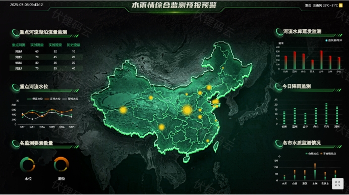 通过整合系统数据(MOM、CRM、生产进度管理系统、车联网等),打通系统之间数据壁垒,围绕产线生产工序及人、机、料、法、环五大核心要素,?通过数据分析和可视化展示,监控整个生产过程,实现了包含大屏端、移动端、?PC后台的综合性管控平台,最终为徐工基础实现向统一调度、统一管控、统一?集成以及可视化决策和分析的先进制造一体化管控平台发展的转变。