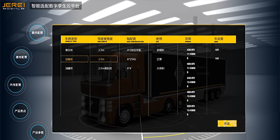 可定制化开发商用车、乘用车、工程机械设备等在线智能选配平台,实现高交互操作、个性化配置,可搭载到企业公众号、APP、官网内,提升在线看车效果,促进营销转化。