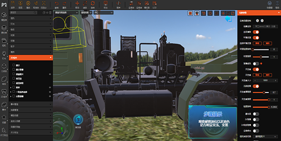 基于webGL的3D框架在线编辑,GPU实时渲染,所见即所得。实现多人同步云端工作,快开发虚拟仿真培训场景。同时,平台提供开放的API接口,支持与各种业务管理系统集成。
